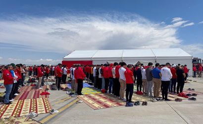 KKTC'de düzenlenen TEKNOFEST alanındaki mescitte kılınan cuma namazı öncesinde okunan hutbede, bilim ve sanayinin önemi vurgulandı. Anadolu Ajansının (AA) global iletişim ortağı olduğu TEKNOFEST, KKTC Cumhurbaşkanlığı himayelerinde, Türkiye Teknoloji Takımı Vakfı (T3 Vakfı) ile Sanayi ve Teknoloji Bakanlığının ana yürütücülüğünde, kamu kuruluşları, teknoloji devleri, üniversiteler ve medya kuruluşlarının da aralarında olduğu 132 kurumun katılımıyla eski Ercan Havalimanı'nda gerçekleştiriliyor. Burada hazırlanan alanda, vatandaşlar cuma namazını kıldı.
