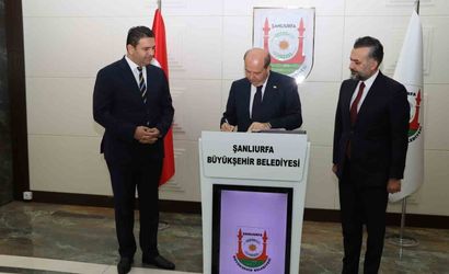 KUZEY KIBRIS TÜRK CUMHURİYETİ 5. CUMHURBAŞKANI ERSİN TATAR, BİR DİZİ TEMAS VE ZİYARET KAPSAMINDA GELDİĞİ ŞANLIURFA'DA, BÜYÜKŞEHİR BELEDİYESİ'Nİ ZİYARET ETTİ.
