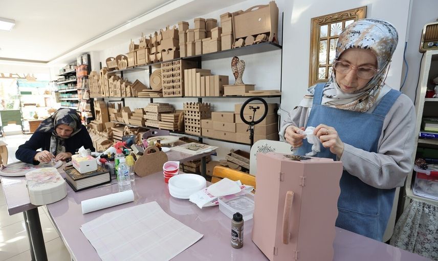 Kurs merkezinde ahşap boyama, ebru, makrome, kağıt rölyef ve çanta dikimi gibi branşlarda eğitim alan üç girişimci, edindikleri becerilerle ortak bir işletme kurma kararı aldı. Bu dönüşüm, kursiyerliğin ötesinde sürdürülebilir bir üretim ve gelir modeli oluşturmayı hedefliyor.