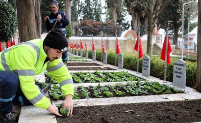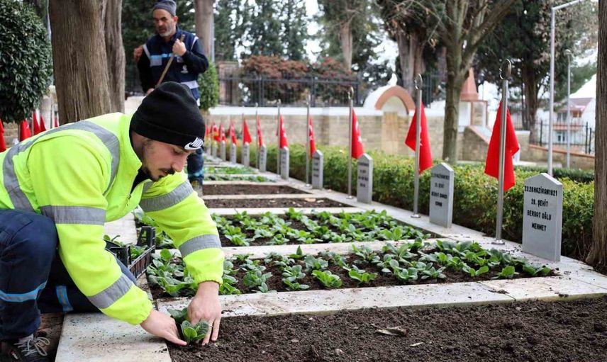 Kocaeli Büyükşehir Belediyesi şehitliklerde çevre düzenlemesi gerçekleştirdi