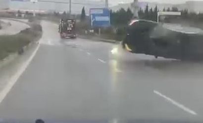 Kocaeli'nin Çayırova ilçesinde yağışlı havada makas atarak ilerleyen bir otomobil kontrolünü kaybederek takla attı. Olay anı bir diğer araçtaki cep telefonu kamerasına saniye saniye yansıdı.