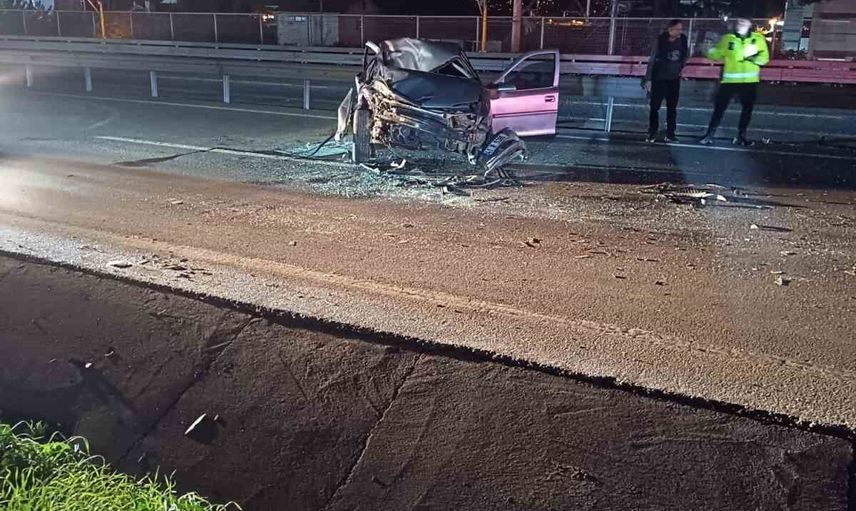 Kocaeli D-100 Karayolu'nda bariyerlere çarpan otomobil parçalandı