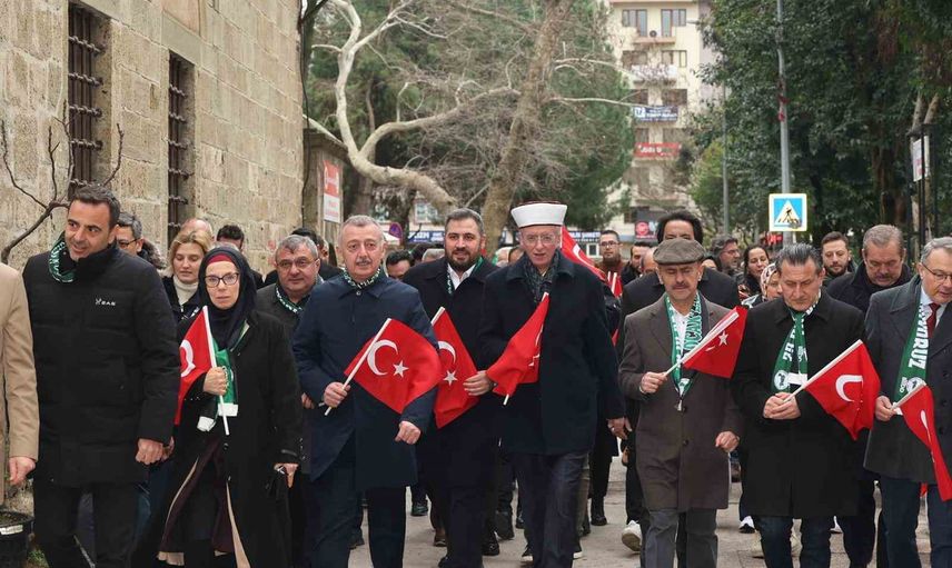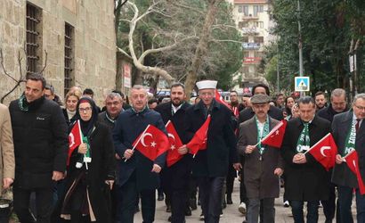 Konuşmaların ardından protokol ve katılımcılar, ellerinde Türk bayrakları ile Antikkapı-Cumhuriyet Bulvarı güzergahında yürüdü. Yürüyüş, Fevziye Cami yanındaki Milli Kimlik ve Direniş Anıtında sona erdi. Güzergah boyunca vatandaşlar yürüyüşe alkışlarla destek verirken, anıta karanfil bırakıldı ve dualar okundu.
