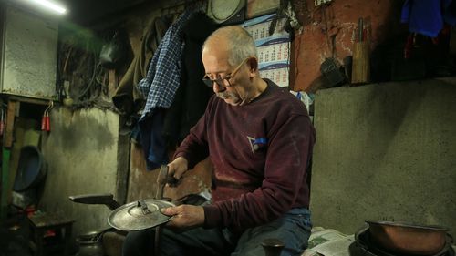 Kocaeli'de 67 yaşındaki kalaycı İlyas Baykal, 54 yıllık mesleğini sürdürüyor, ancak çırak bulmakta zorlanıyor.