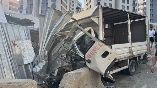 Kocaeli'nin İzmit ilçesinde yokuştan inerken beton bloka çarpan kamyonetin sürücüsü yaralandı ve hastaneye kaldırıldı.