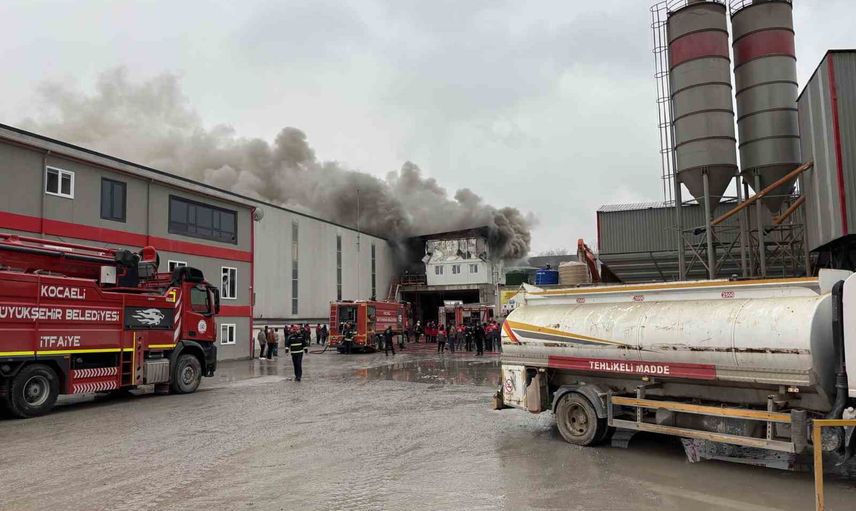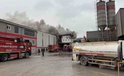 Kocaeli'de beton fabrikasının çatısında yangın: 2 işçi dumandan etkilendi