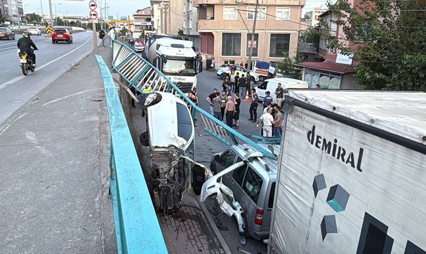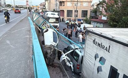 Kocaeli'nin Gebze ilçesinde, istinat duvarından düşerek asılı kalan otomobil 4 araca zarar verdi.