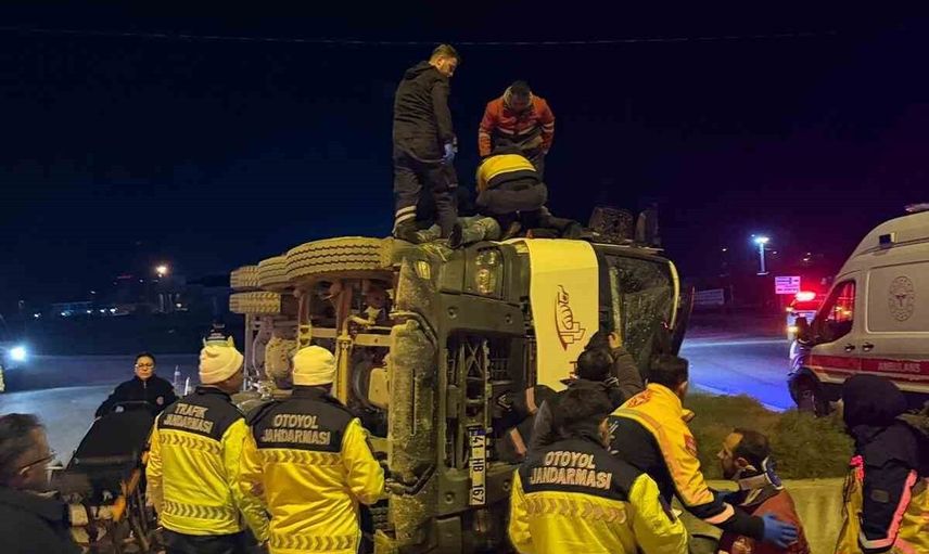 Kaza, gece saatlerinde Kuzey Marmara Otoyolu'nun İstanbul istikameti Sevindikli Gişeleri mevkisinde meydana geldi. Sürücüsü öğrenilemeyen 41 HB 167 plakalı beton mikseri kontrolden çıkarak devrildi ve araçta bulunan iki kişi sıkıştı.