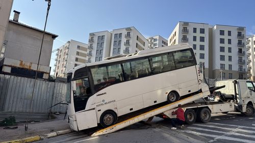 Kocaeli İzmit'te, Bursa Kestel'den cenaze için gelen polisleri taşıyan midibüs binanın duvarına çarptı; 3'ü polis 7 kişi yaralandı, sağlık durumları iyi.