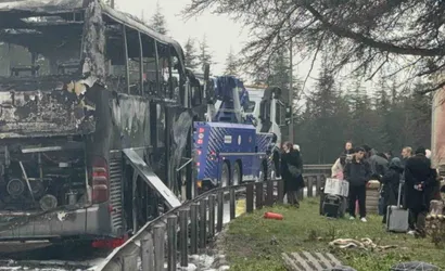 KOCAELİ’DE YOLCUNUN SEYİR HALİNDEYKEN ALDIĞI YANIK KOKUSUNU FARK EDEREK DURUMU GÖREVLİLERE BİLDİRMESİ, ŞEHİRLER ARASI YOLCU OTOBÜSÜNDE YAŞANABİLECEK OLASI BİR FACİAYI ÖNLEDİ. YOLCULARIN TAHLİYE EDİLMESİNİN ARDINDAN ÇIKAN YANGINDA OTOBÜS HURDAYA DÖNDÜ.
