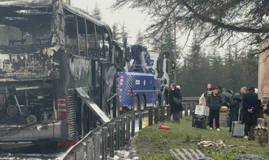 Edinilen bilgiye göre, Karadeniz Bölgesi'nden gelen 34 LR 6052 plakalı otobüste seyir halindeyken bir yolcu yanık kokusu fark etti ve durumu muavine bildirdi. Araç sürücüsünün durdurmasıyla yolcular hızla tahliye edildi, kısa süre sonra otobüste yangın başladı.
