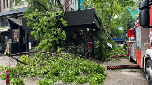 Kocaeli'nin İzmit ilçesinde şiddetli rüzgar, bir çınar ağacının devrilmesine ve bir kafede hasar oluşmasına neden oldu.