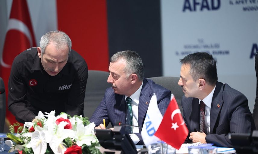 Kocaeli Valisi İlhami Aktaş (sağ 4), Büyükşehir Belediye Başkanı Tahir Büyükakın (sağ 5), Kocaeli Üniversitesi Rektörü Prof. Dr. Zafer Cantürk (sağ 3), İl Emniyet Müdürü Faruk Karaduman (sol 3), İl Jandarma Komutanı Murat Bozkurt (sol 4), İl Sağlık Müdürü Yüksel Pehlevan (sağda), AFAD İl Müdürü Mehmet Emin Koçan (solda), merkez üssü İstanbul'un Silivri ilçesi olan 6,2 büyüklüğündeki depremin Kocaeli'de de hissedilmesinin ardından AFAD İl Müdürlüğünde bir araya geldi.