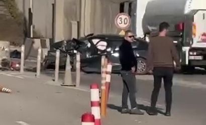 Kocaeli'de TEM gişelerine çarpan otomobil kullanılamaz hale geldi
