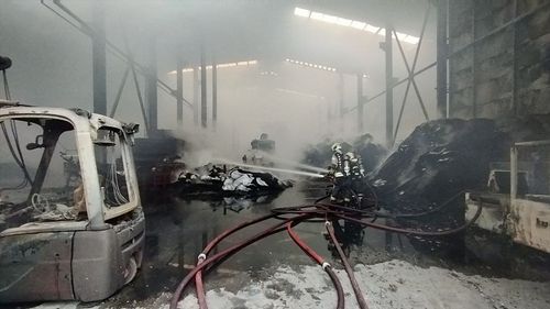 Dilovası'ndaki kömür fabrikasında çıkan yangın itfaiye ekipleri tarafından kontrol altına alındı, soğutma çalışmaları devam ediyor.