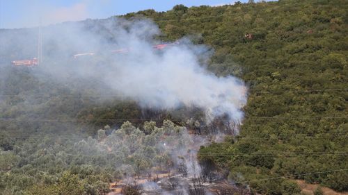 Kocaeli Derince Çınarlı Mahallesi'nde Ağaçlık Alanda Çıkan Yangın Söndürüldü