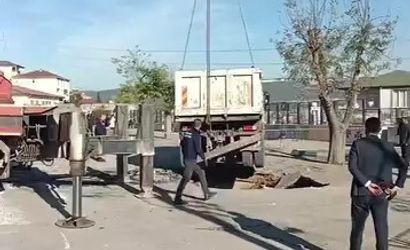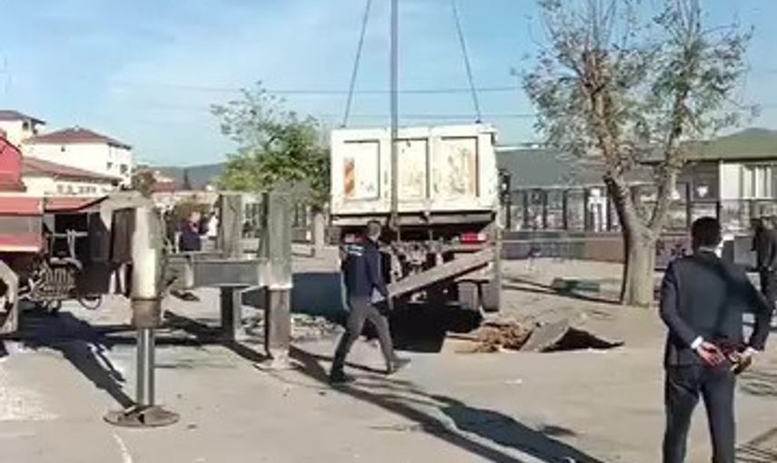 Olay anında çalışma sahasında bulunan bir kamyonun arka tekerlekleri oluşan çukura düştü. Çalışanların ihbarı üzerine bölgeye zabıta ve kurtarma ekipleri sevk edildi.