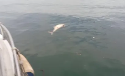 KOCAELİ'NİN KARAMÜRSEL İLÇESİNDE KIYIYA YAKIN BİR NOKTADA, SU YÜZEYİNDE ÇÜRÜMEKTE OLAN ÖLÜ YUNUS GÖRÜNTÜLENDİ.