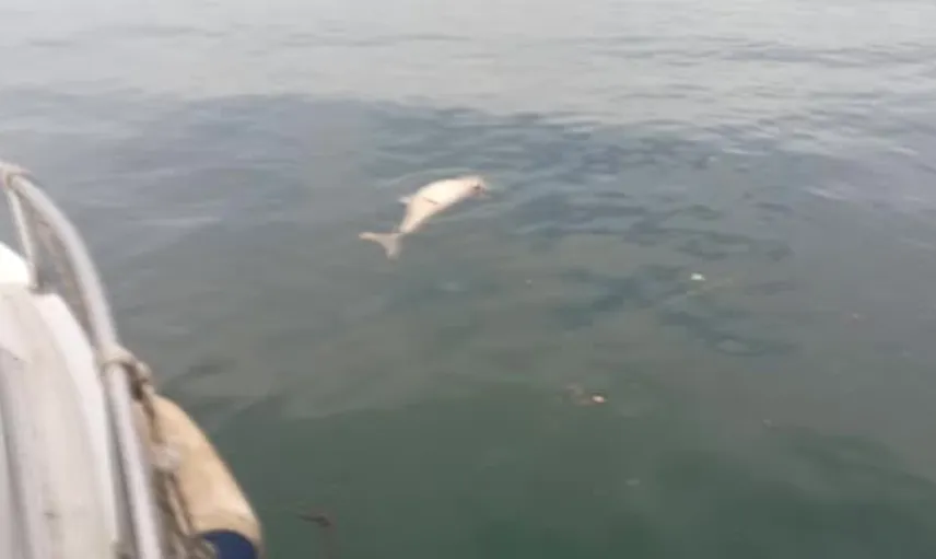 Kocaeli'nin Karamürsel ilçesinde kıyıya yakın bir noktada, su yüzeyinde çürümekte olan ölü bir yunus görüldü.