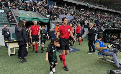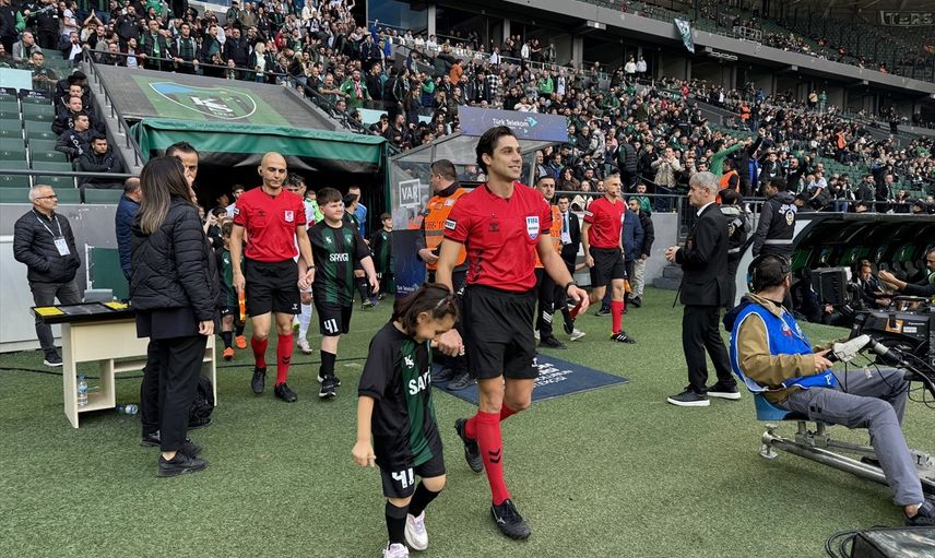 Trendyol Süper Lig'in 10. haftasında Kocaelispor ile Corendon Alanyaspor, Turka Araç Muayene Kocaeli Stadı'nda karşılaştı. Hakem Mehmet Türkmen, yardımcı hakemler Abdullah Bora Özkara (sağda) ile Salih Burak Demirel (solda) ve futbolcular, sahaya çocuklarla çıktı.