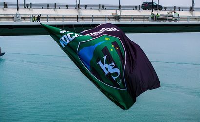 Trendyol 1. Lig'de sezonun bitimine 3 hafta kala şampiyonluğu garantileyen Kocaelispor'un bayrağı Osmangazi Köprüsü'ne asıldı.