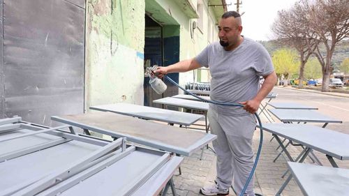 Koçarlı’da Demir Masalar Yeni Düğün Sezonuna Boyanarak Hazırlanıyor