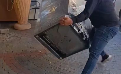 AYDIN’IN KOÇARLI İLÇESİNDE SATIN ALDIĞI MAĞAZADAN KENDİSİNE TEŞHİR ÜRÜNÜ GÖNDERİLDİĞİNİ İDDİA EDEN BİR KİŞİ, BULAŞIK MAKİNESİNİ MAĞAZANIN ÖNÜNDE YERE ATTI.
