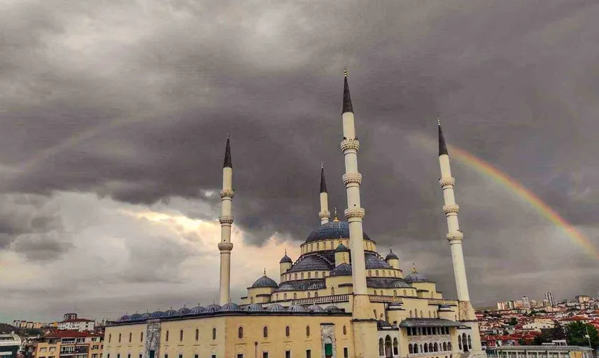 Kocatepe Camii semalarında yağmur sonrası gökkuşağı