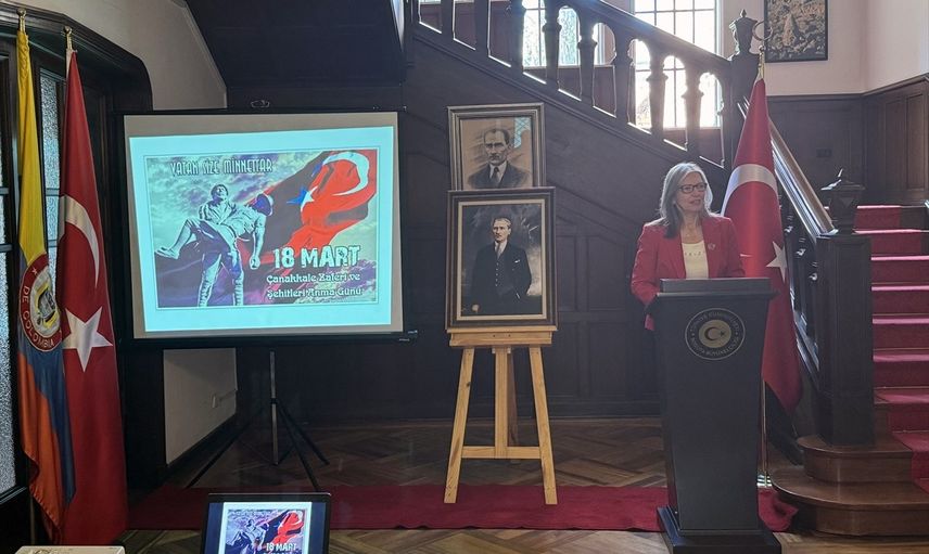 Güney Amerika'nın Kolombiya ülkesinde, 18 Mart Şehitleri Anma Günü ve Çanakkale Deniz Zaferi'nin 110. yıl dönümü dolayısıyla bir anma töreni düzenlendi. Tören, Türkiye'nin Bogota Büyükelçiliği'nde gerçekleştirildi ve saygı duruşu ile İstiklal Marşı'nın okunmasıyla başladı.