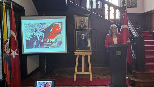 Kolombiya'da, Çanakkale Deniz Zaferi'nin 110. yıl dönümü anma töreni düzenlendi. Törende Türkiye'nin Bogota Büyükelçisi konuşma yaptı.