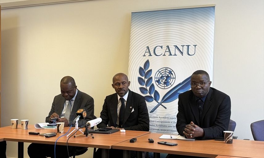 Kongo Demokratik Cumhuriyeti (KDC) Hükümet Sözcüsü Patrick Muyaya (ortada), Akredite Basın Mensupları Birliği (ACANU) üyesi gazetecilerle bir araya gelerek ülkede güvenlik güçleri ile M23 arasında yaşanan çatışmalara ilişkin değerlendirmelerde bulundu.
