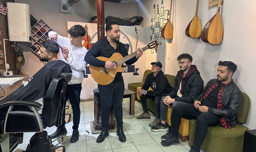 Van'ın Erciş ilçesinde bulunan Dalan Caddesi'nde, Kafkas Üniversitesi Devlet Konservatuvarı üçüncü sınıf öğrencisi Yunus Karadağ, berberlik yaparken müzik tutkusunu da işine entegre ediyor. Müşterileri, aynı zamanda müzisyen arkadaşlarıyla birlikte canlı müzik eşliğinde tıraş olmanın keyfini yaşıyor.