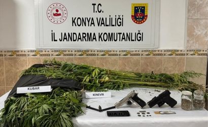 Konya'nın Akşehir ilçesinde tarihi eser ve uyuşturucu operasyonunda gözaltına alınan 3 şüpheli tutuklandı. Operasyonda 2 kilo 100 gram kubar esrar, 138 kök kenevir, 200 gram kenevir tohumu, 2 esrar sarma kağıdı, 1 kurusıkı tabanca, 1 kurusıkıdan çevrilmiş tabanca, 1 kelebek bıçak, 1 dedektör ve 7 sikke ele geçirildi.