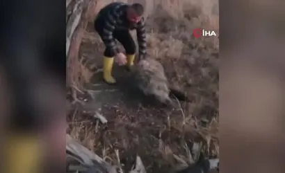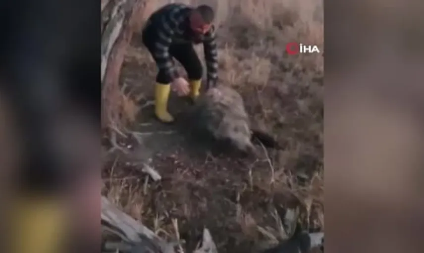 Konya Beyşehir'de bir vatandaş 80 kiloluk yaban domuzunu elleriyle yakaladı