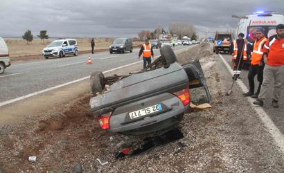 Edinilen bilgiye göre, Beyşehir-Antalya kara yolunun 3. kilometresinde, Ersoy A. yönetimindeki 45) 32 SL 717 plakalı otomobil Antalya'dan Beyşehir yönüne seyir halindeyken kontrolden çıkarak takla attı. Araç refüje devrilerek ters döndü.