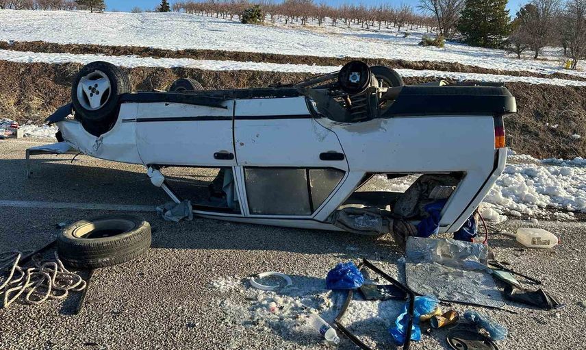 Konya'nın Bozkır ilçesine bağlı Kadibeli mevkiinde, buzlanma nedeniyle kontrolü kaybeden bir otomobil takla attı.