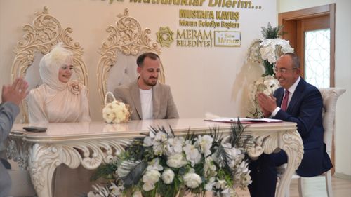 Konya'da birçok çift, nikah günü olarak 5 Mayıs 2025'i tercih etti. Bu durum, nikah dairelerinde ciddi bir yoğunluk yarattı. Merkez Meram, Selçuklu ve Karatay ilçelerinde bu tarihte 83 çiftin nikahı kıyıldı. Meram Belediye Başkanı Mustafa Kavuş, Fahrünnisa Hatun Kültür Merkezi'nde…