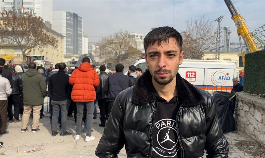 Konya'da oturdukları apartmanın çökmesini cep telefonu kamerasıyla kaydeden 21 yaşındaki Muhammed Hasan, enkazda arama kurtarma çalışmalarını izliyor. Hasan, AA muhabirine, konuya ilişkin açıklamalarda bulundu.