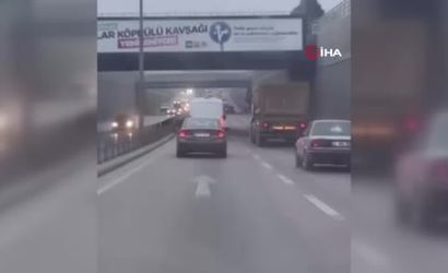 Tehlikeli sürüş anları bir amatör kamera tarafından saniye saniye kaydedildi. Videoda minibüs, araçların arasından geçmeye devam ederken bir süre sonra gözden kayboluyor.