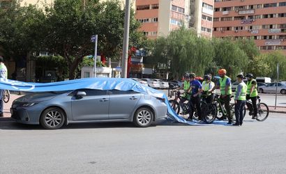 Konya'da bisiklet kullanıcıları, "Avrupa Hareketlilik Haftası" kapsamında bisiklet yollarını işgal eden araçların üzerine mavi brandalar kaplayarak dikkat çekti. Bu etkinlik, araç sürücülerinin bisiklet yollarına karşı daha duyarlı olmaları amacıyla gerçekleştirildi.