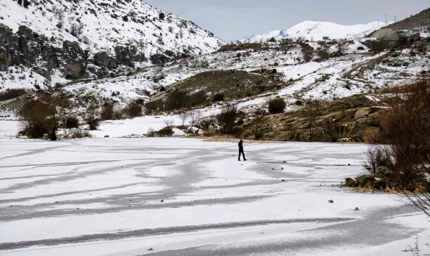 Konya'da Bulumya Göleti tamamen buz tuttu
