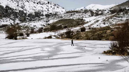Konya-Antalya karayolu üzerindeki Bulumya Göleti, bir haftadır süren aşırı soğuklar nedeniyle yüzeyinin tamamen donmasıyla dikkat çekti.