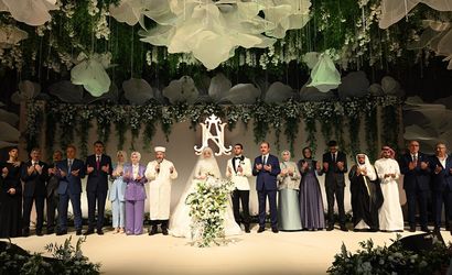 İkibin kişilik bir davetli grubu; gelin ve damada tebriklerini iletarak, düğün coşkusunu paylaştı.