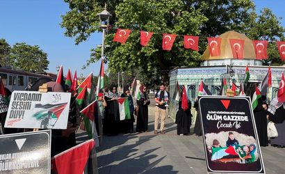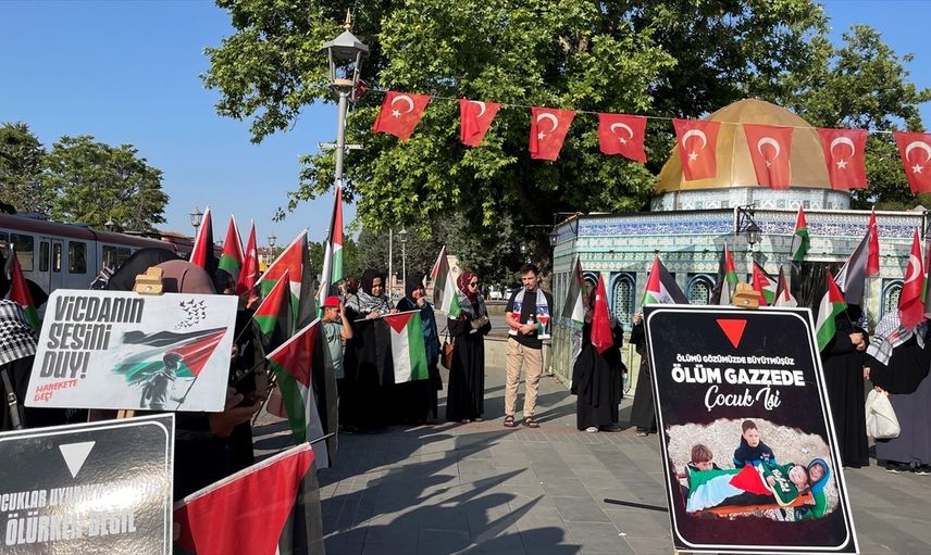 Etkinlikte toplanan kadınlar tekbir getirerek, "Vicdanın sesini duy, harekete geç" ve "Ölümü gözümüzde büyütmüşüz, ölüm Gazze'de çocuk işi" yazılı pankartlar açtı. Katılımcılar, durumu protesto etmek amacıyla topluca bir araya geldi.
