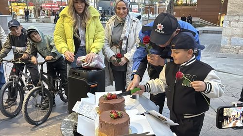 Konya'da bir grup, polise sürpriz yaparak, Türk Polis Teşkilatının 180. yıl dönümünü kutladı.