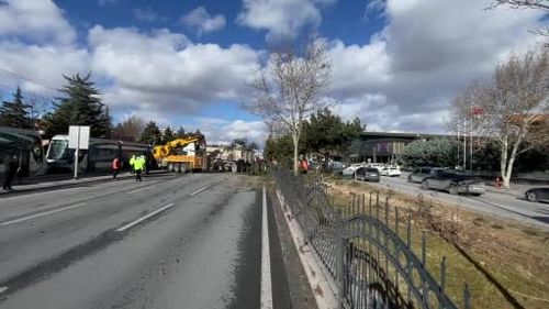 Konya'da Yeni İstanbul Caddesi'nde sürücünün direksiyon hakimiyetini kaybettiği tır refüjdeki ağaçları ezip karşı şeride geçti; cadde 1 saat trafiğe kapandı.