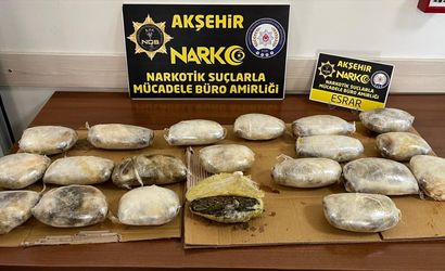 Konya'nın Akşehir ilçesinde, düzenlenen operasyonda valizinde 11 kilogram esrar bulunan zanlı tutuklandı.