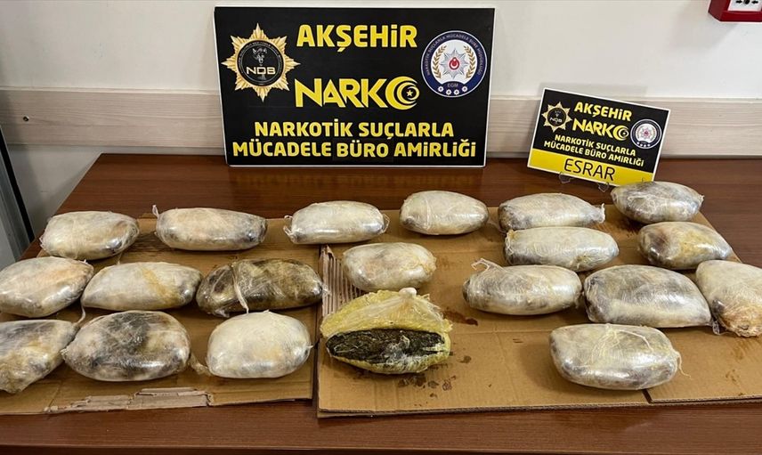 Akşehir İlçe Emniyet Müdürlüğü'ne bağlı Narkotik Suçlarla Mücadele Büro Amirliği ve Konya Narkotik Suçlarla Mücadele Şube Müdürlüğü ekipleri, uyuşturucu taşımakla suçlanan M.Ç'nin ilçeye uyuşturucu madde getireceği bilgisi üzerine harekete geçti.
