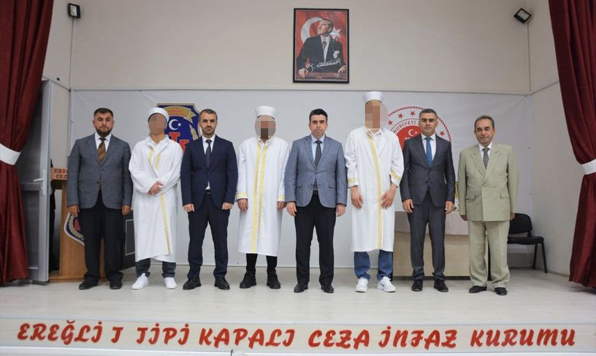 Konya'nın Ereğli ilçesinde, Ereğli T Tipi ve Açık Ceza İnfaz Kurumunda hafızlık eğitimini tamamlayan 3 hükümlü için icazet töreni gerçekleştirildi.