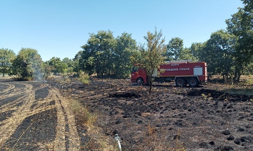 Konya'nın Beyşehir ilçesinde çıkan yangında arpa ekili alan zarar gördü.